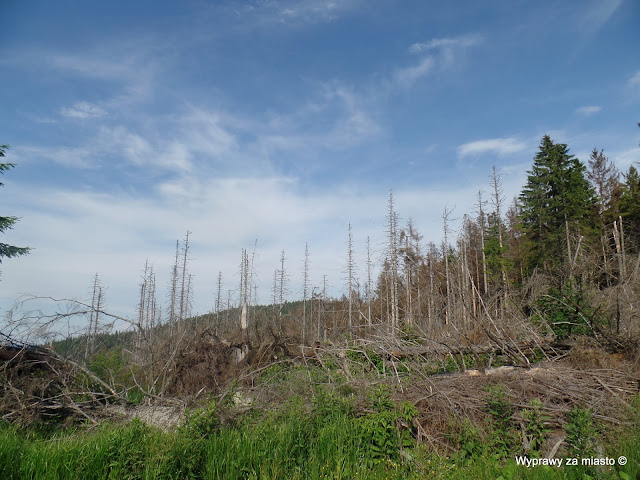 Dalsze obserwacje okolicy wskazywały niestety na to, że świerki nie mają lekko w tym kraju. A to kornik drukarz, który to bynajmniej nie o edukację czytelniczą świerków dba, a to dziwna choroba, a to gwałtowny huragan, który nawiedził te strony wiele lat temu, ale do tej pory krajobraz pamięta jego wyczyny.